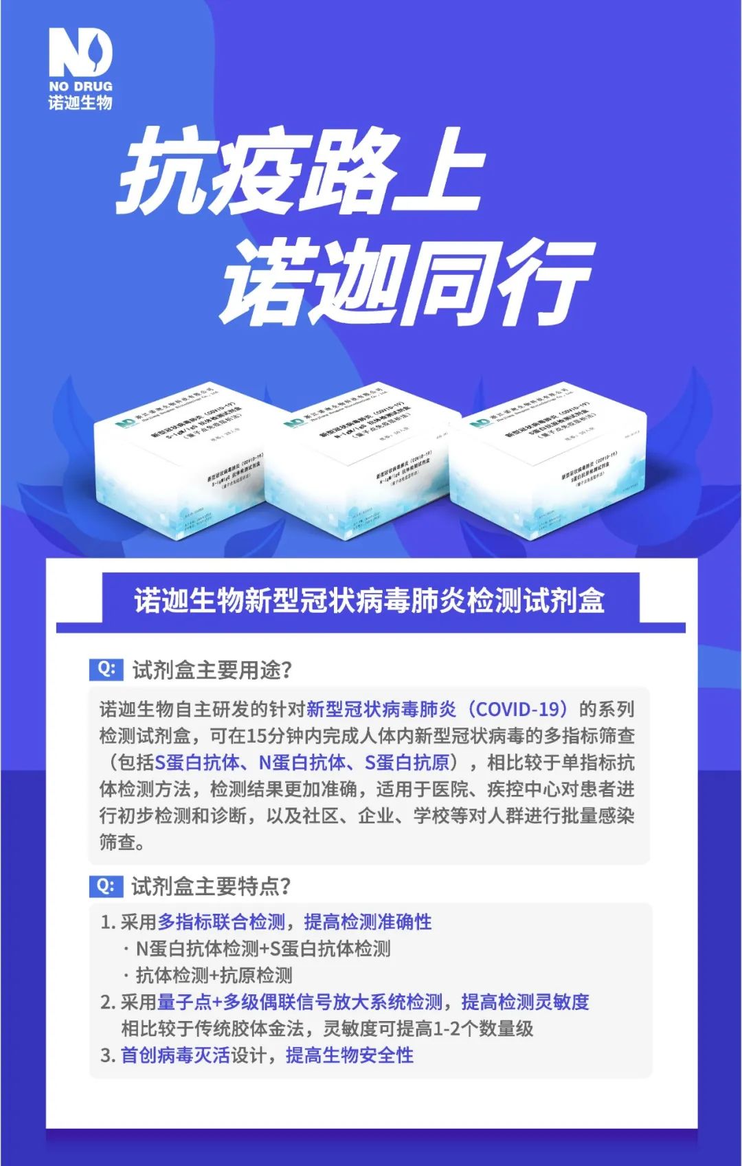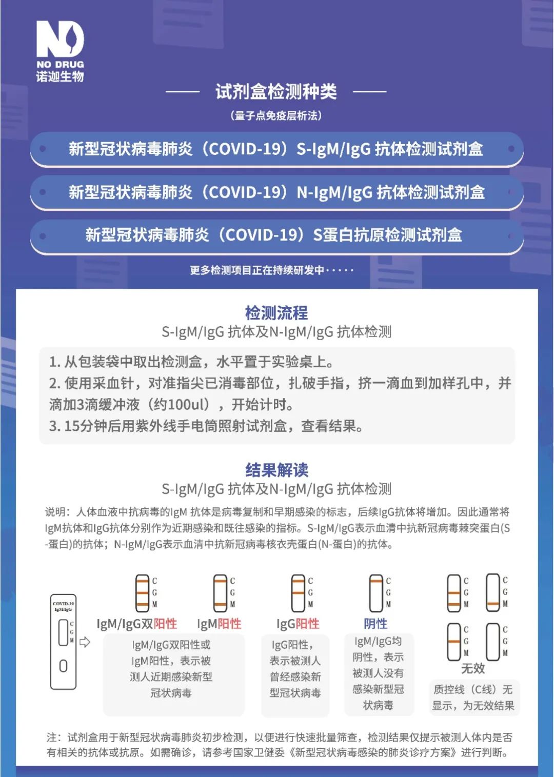 諾迦生物自成立以來,以體外診斷吸毒人群為開端,已建立了針對于特殊人群的綜合、專業的體外診斷解決方案。此次針對新型冠狀病毒肺炎(COVID-19)研發檢測試劑盒,是諾迦生物致力于服務人類健康這一重要使命的又一次實踐。